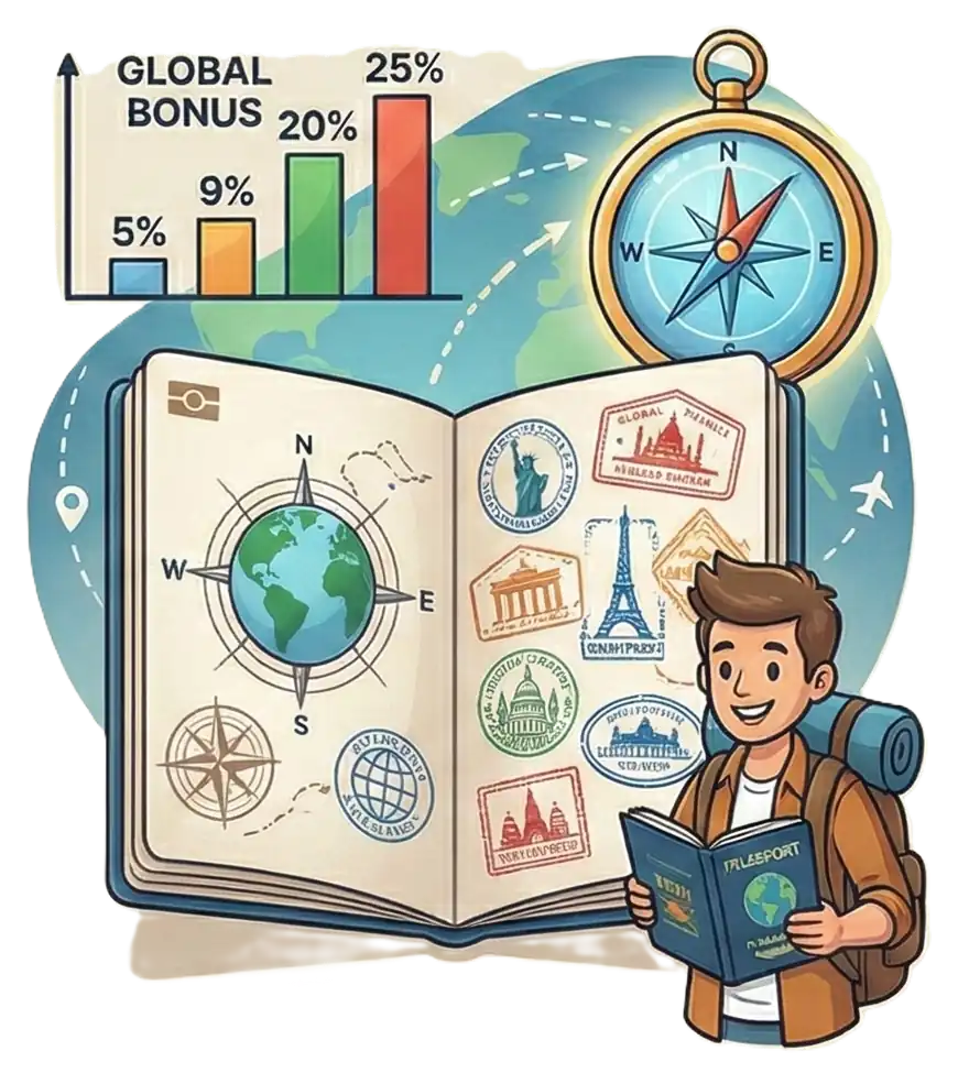 Wenn du im echten Leben unterwegs bist – sei es im Urlaub oder beim Pendeln in die nächste große Stadt – kannst du in der App virtuelle Reisestempel für deinen Pass kaufen. Der geniale Vorteil: Diese Abzeichen geben dir einen dauerhaften Bonus auf dein gesamtes Einkommen (von 5 % bis zu satten 25 %). Einmal gekauft, pushen sie deine Einnahmen für immer.