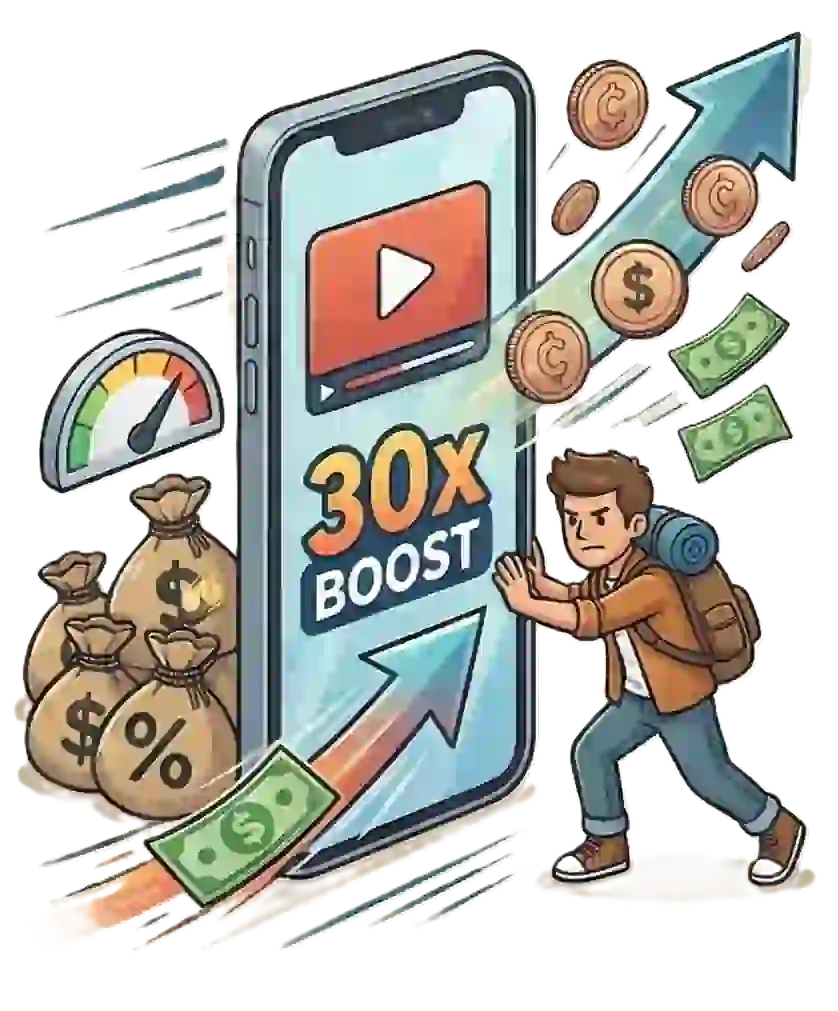 Das ist der wichtigste Hebel der ganzen Strategie! Wenn du dir in der App kurze Werbevideos ansiehst, aktivierst du den „Rent Boost“. Dadurch wird dein komplettes Einkommen für eine gewisse Zeit massiv vervielfacht (am Anfang z. B. um das 30-fache!). Wer diesen Boost täglich aktiv hält, verwandelt das langsame Tröpfeln in einen echten Geldfluss.